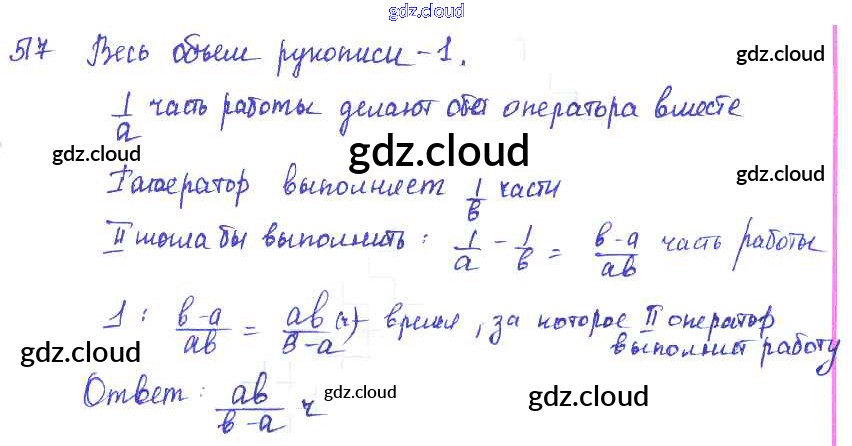 Ответ на задание 517 Учебник Алгебра  за 7 (седьмой) класс Алимов, Колягин, Сидоров, Ткачева, Федорова, Шабунин   2014
