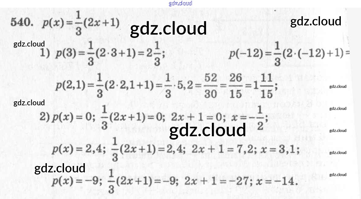 Ответ на задание 540 Учебник Алгебра  за 7 (седьмой) класс Алимов, Колягин, Сидоров, Ткачева, Федорова, Шабунин   2014