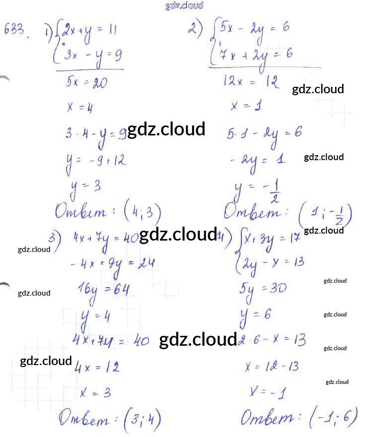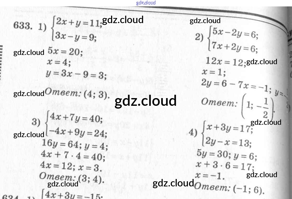 §35. Способ сложения Ответы к Главе 7. Системы двух уравнений с двумя неизвестными по Алгебре 7 класс Учебник Алимов Просвещение