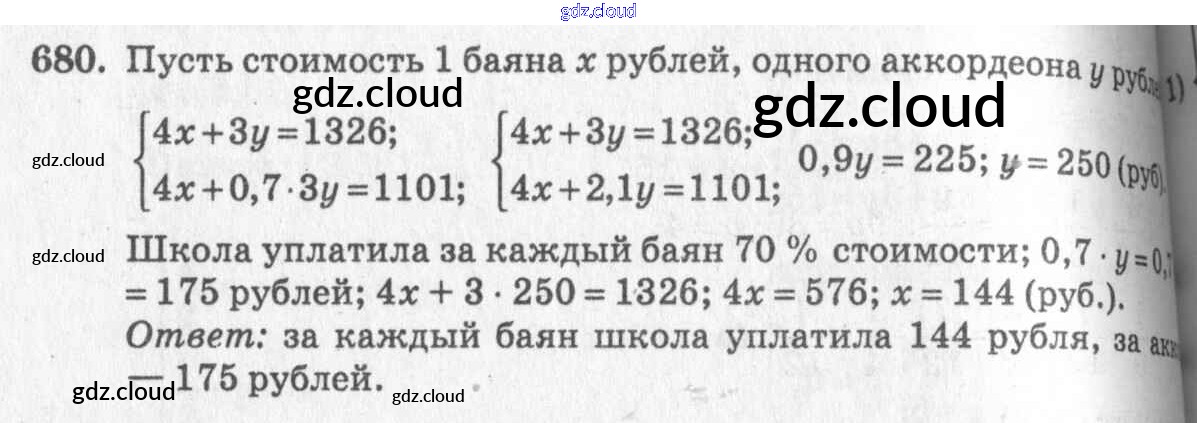Ответ на задание 680 Учебник Алгебра  за 7 (седьмой) класс Алимов, Колягин, Сидоров, Ткачева, Федорова, Шабунин   2014