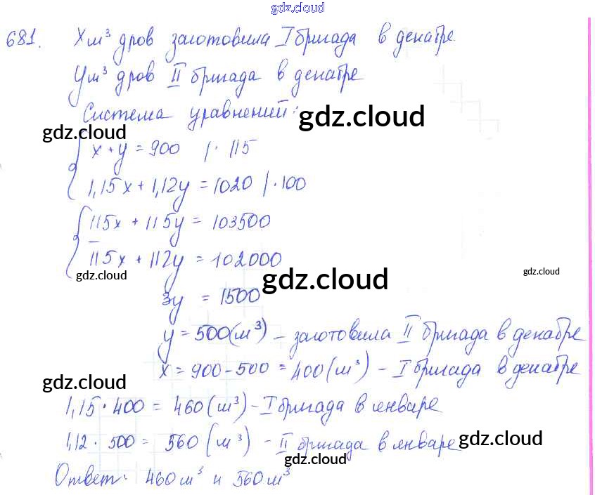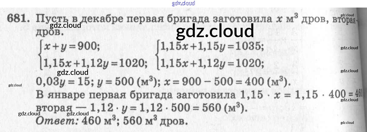 Ответ на задание 681 Учебник Алгебра за 7 (седьмой) класс Алимов, Колягин, Сидоров, Ткачева, Федорова, Шабунин 2014