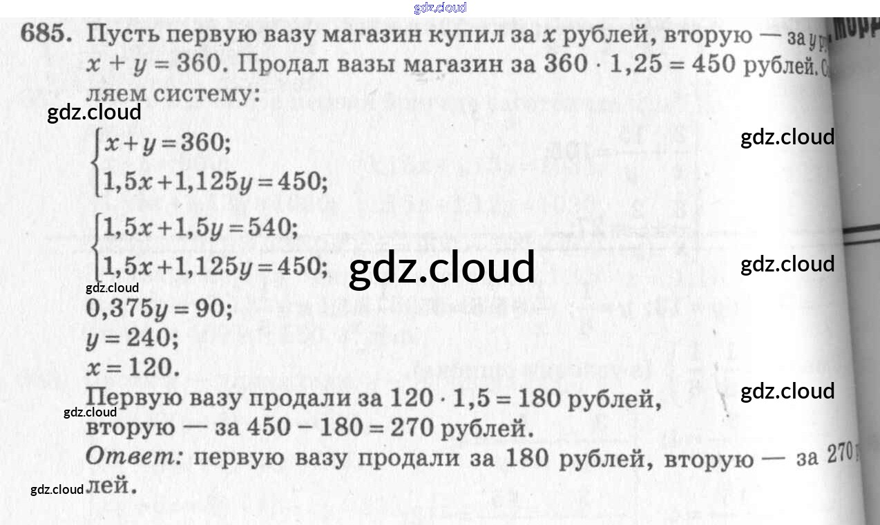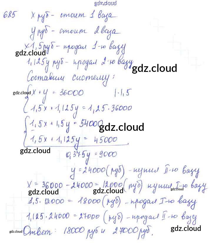 Ответ на задание 685 Учебник Алгебра за 7 (седьмой) класс Алимов, Колягин, Сидоров, Ткачева, Федорова, Шабунин 2014