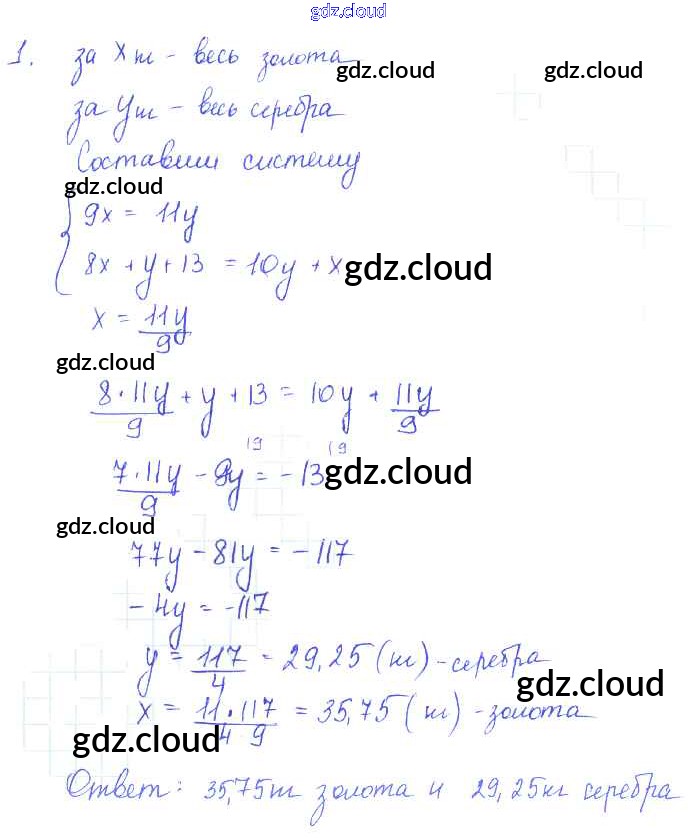 Старинные задачи Ответы к Главе 7. Системы двух уравнений с двумя неизвестными по Алгебре 7 класс Учебник Алимов    Просвещение