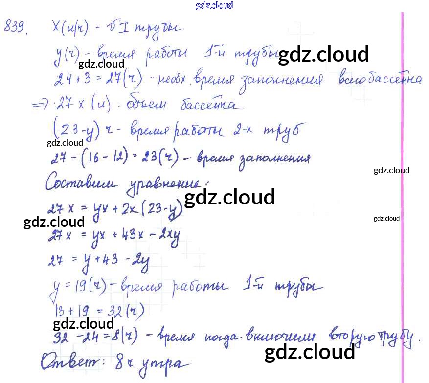 Ответ на задание 839 Учебник Алгебра за 7 (седьмой) класс Алимов, Колягин, Сидоров, Ткачева, Федорова, Шабунин 2014 ФГОС онлайн и без номера телефона.
