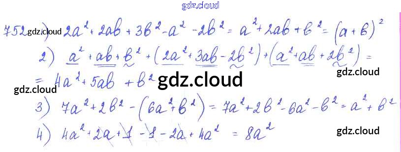 Ответ на задание 752 Учебник Алгебра за 7 (седьмой) класс Алимов, Колягин, Сидоров, Ткачева, Федорова, Шабунин 2014