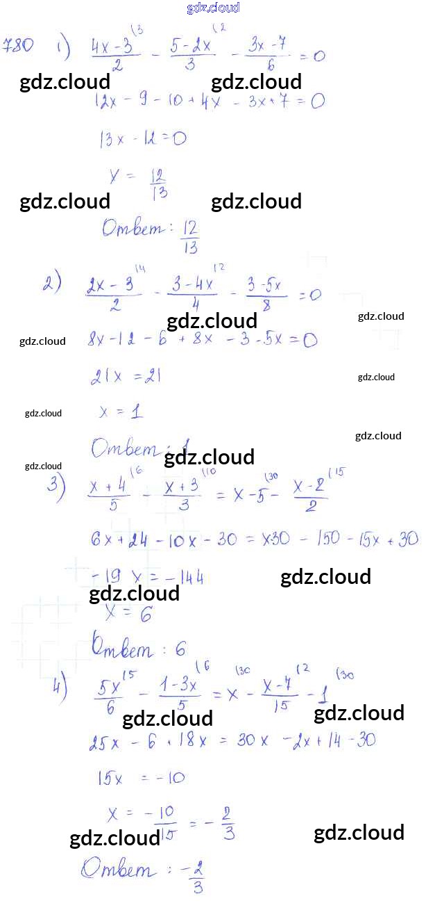 Ответ на задание 780 Учебник Алгебра за 7 (седьмой) класс Алимов, Колягин, Сидоров, Ткачева, Федорова, Шабунин 2014