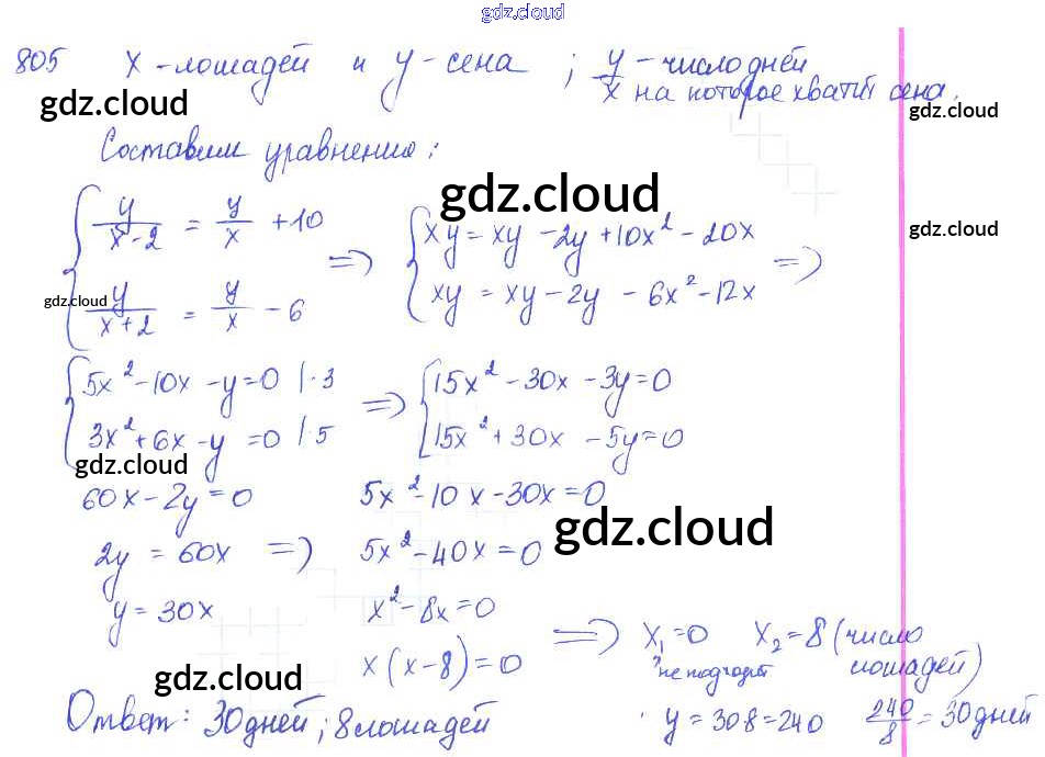 Ответ на задание 805 Учебник Алгебра  за 7 (седьмой) класс Алимов, Колягин, Сидоров, Ткачева, Федорова, Шабунин   2014