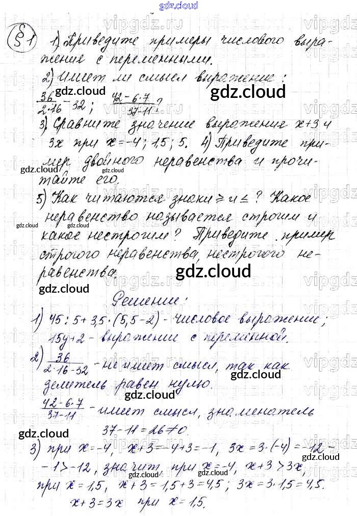 Ответ на задание §1 Учебник Алгебра  за 7 (седьмой) класс Макарычев, Миндюк, Нешков, Суворова   2015