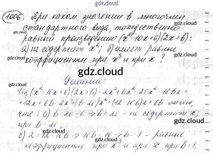 Ответ на задание 1006 Учебник Алгебра за 7 (седьмой) класс Макарычев, Миндюк, Нешков, Суворова 2015