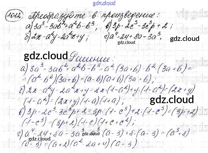 Ответ на задание 1012 Учебник Алгебра  за 7 (седьмой) класс Макарычев, Миндюк, Нешков, Суворова   2015