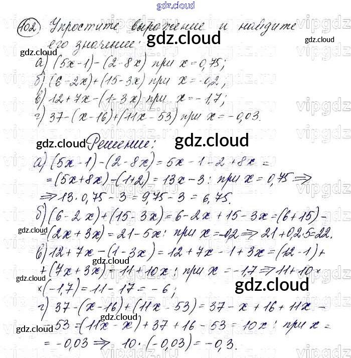 Ответ на задание 102 Учебник Алгебра  за 7 (седьмой) класс Макарычев, Миндюк, Нешков, Суворова   2015