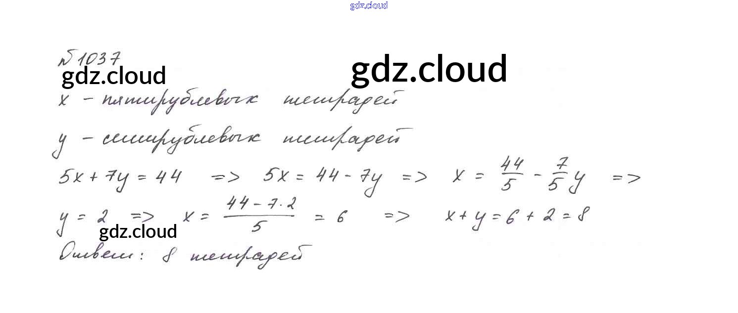 Ответ на задание 1037 Учебник Алгебра  за 7 (седьмой) класс Макарычев, Миндюк, Нешков, Суворова   2015