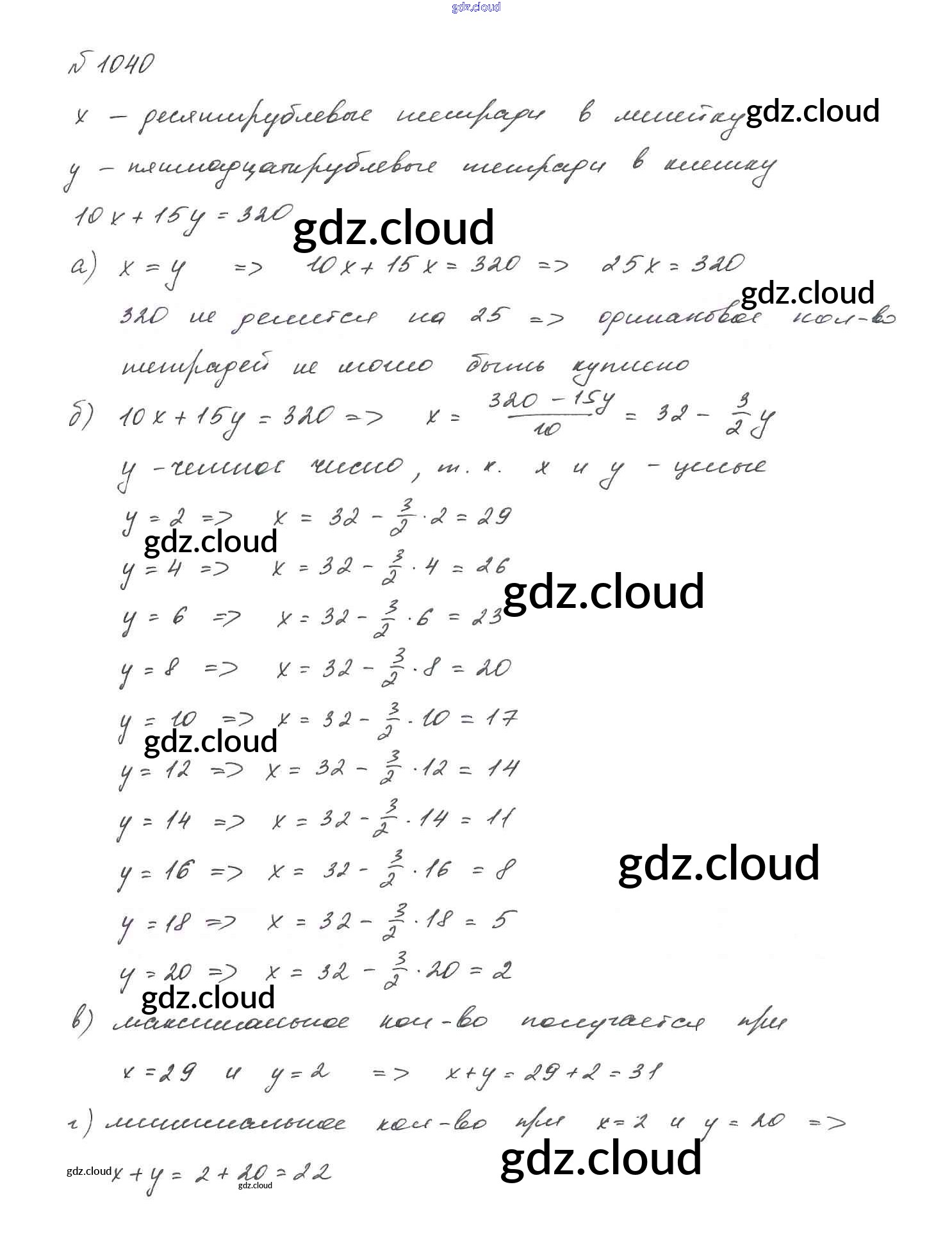 Ответ на задание 1040 Учебник Алгебра  за 7 (седьмой) класс Макарычев, Миндюк, Нешков, Суворова   2015