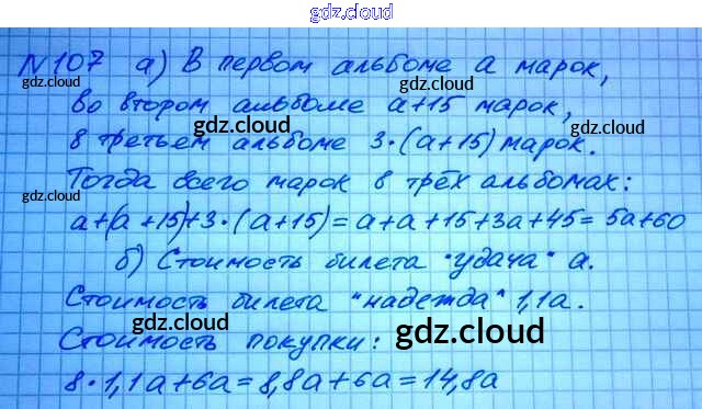 Ответ на задание 107 Учебник Алгебра за 7 (седьмой) класс Макарычев, Миндюк, Нешков, Суворова 2015