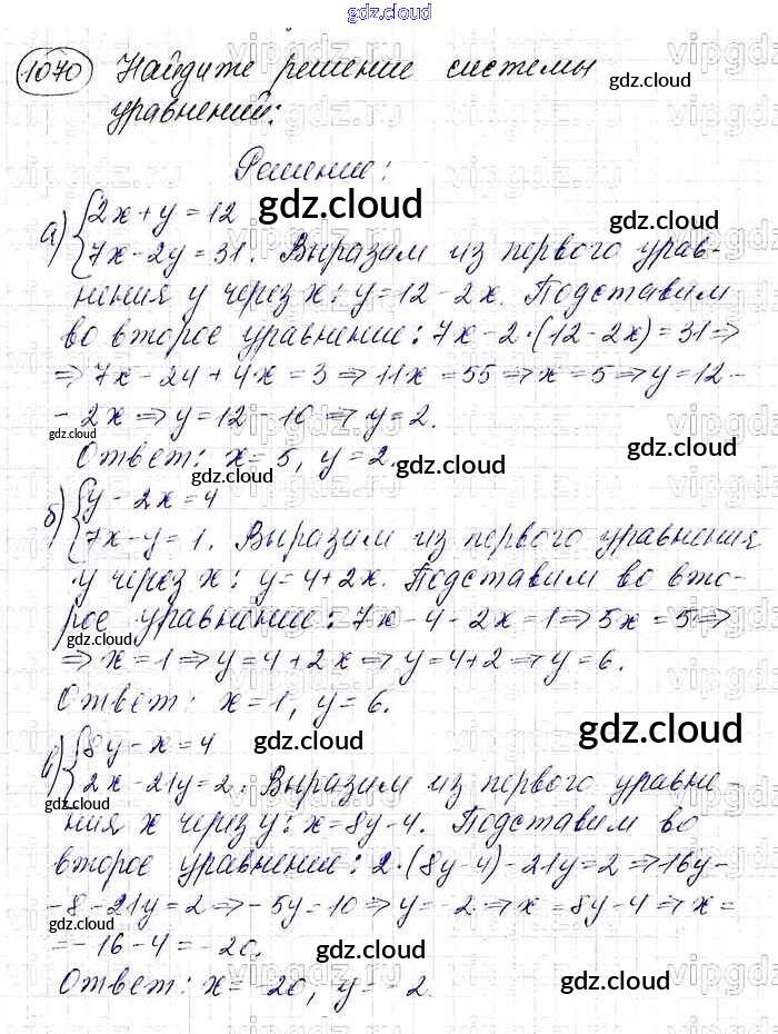 Ответ на задание 1070 Учебник Алгебра  за 7 (седьмой) класс Макарычев, Миндюк, Нешков, Суворова   2015