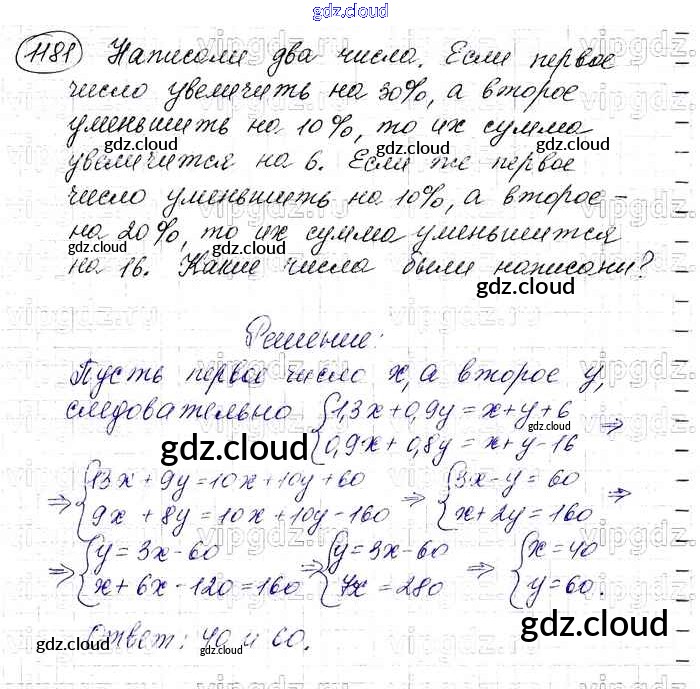 Ответ на задание 1181 Учебник Алгебра  за 7 (седьмой) класс Макарычев, Миндюк, Нешков, Суворова   2015