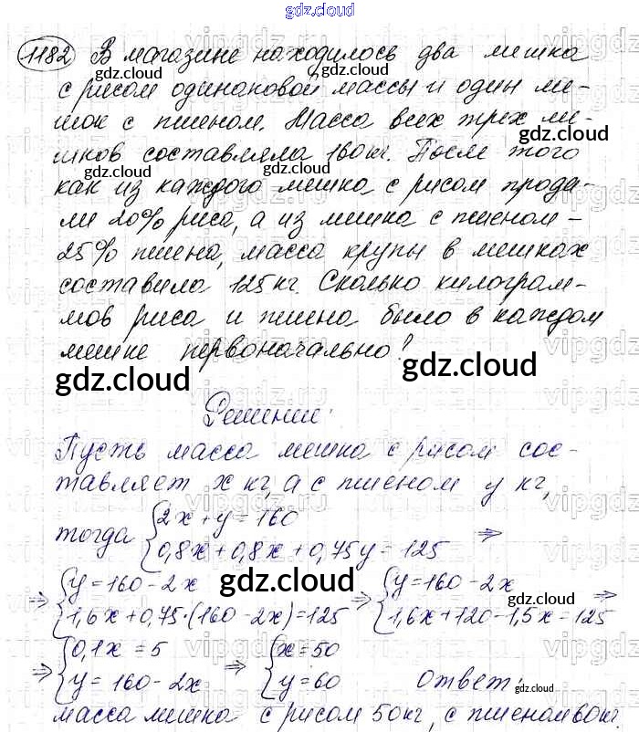 Ответ на задание 1182 Учебник Алгебра  за 7 (седьмой) класс Макарычев, Миндюк, Нешков, Суворова   2015