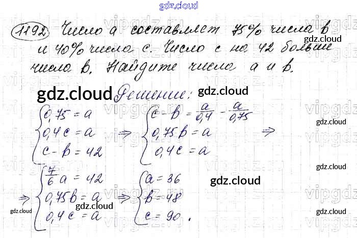 Ответ на задание 1192 Учебник Алгебра  за 7 (седьмой) класс Макарычев, Миндюк, Нешков, Суворова   2015