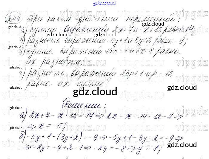 Ответ на задание 244 Учебник Алгебра  за 7 (седьмой) класс Макарычев, Миндюк, Нешков, Суворова   2015