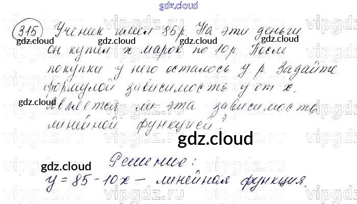 Ответ на задание 315 Учебник Алгебра  за 7 (седьмой) класс Макарычев, Миндюк, Нешков, Суворова   2015