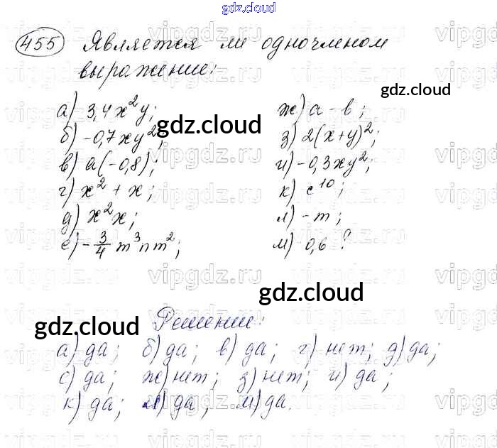 Ответ на задание 455 Учебник Алгебра за 7 (седьмой) класс Макарычев, Миндюк, Нешков, Суворова 2015