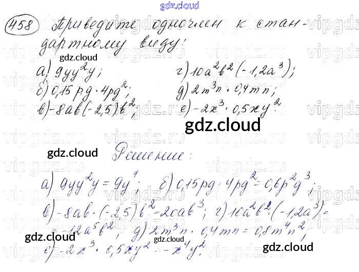 Ответ на задание 458 Учебник Алгебра  за 7 (седьмой) класс Макарычев, Миндюк, Нешков, Суворова   2015