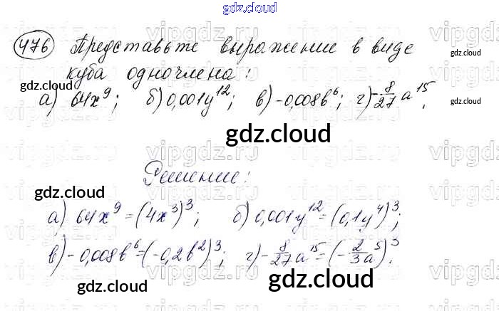 Ответ на задание 476 Учебник Алгебра  за 7 (седьмой) класс Макарычев, Миндюк, Нешков, Суворова   2015