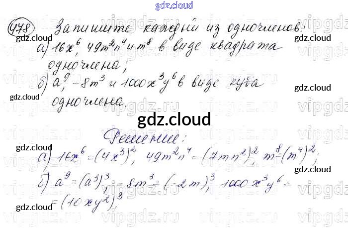 Ответ на задание 478 Учебник Алгебра за 7 (седьмой) класс Макарычев, Миндюк, Нешков, Суворова 2015