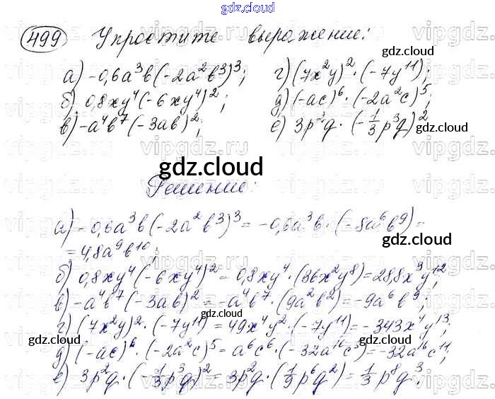 Ответ на задание 499 Учебник Алгебра  за 7 (седьмой) класс Макарычев, Миндюк, Нешков, Суворова   2015