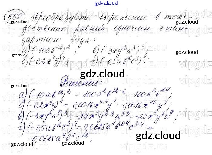 Ответ на задание 558 Учебник Алгебра за 7 (седьмой) класс Макарычев, Миндюк, Нешков, Суворова 2015