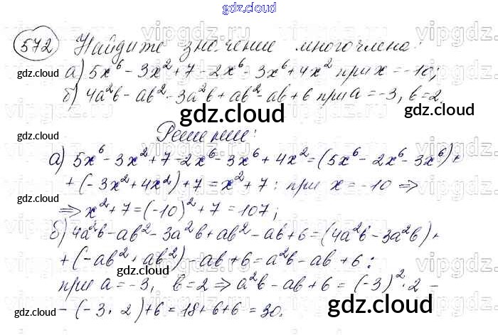 Ответ на задание 572 Учебник Алгебра за 7 (седьмой) класс Макарычев, Миндюк, Нешков, Суворова 2015