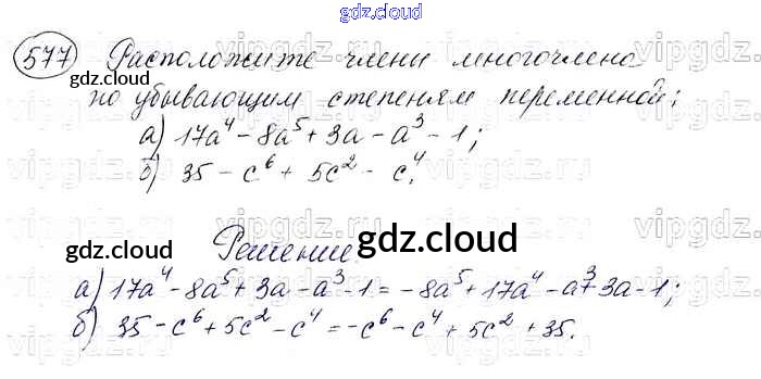 Ответ на задание 577 Учебник Алгебра за 7 (седьмой) класс Макарычев, Миндюк, Нешков, Суворова 2015