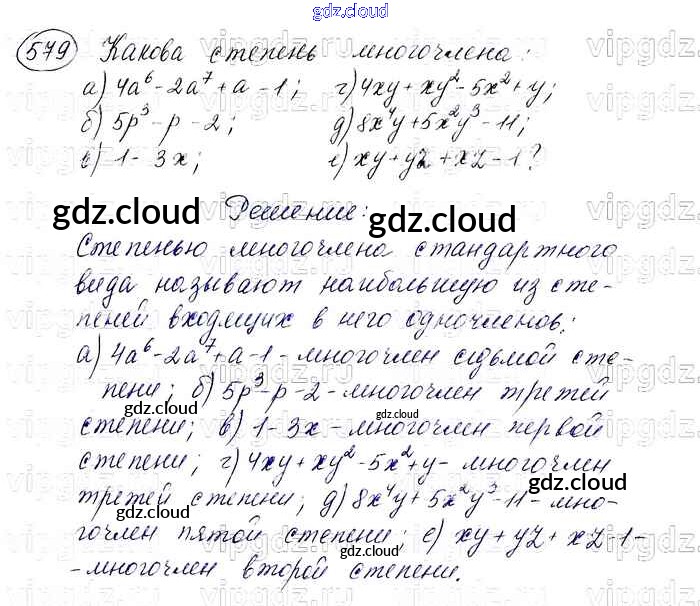 Ответ на задание 579 Учебник Алгебра за 7 (седьмой) класс Макарычев, Миндюк, Нешков, Суворова 2015
