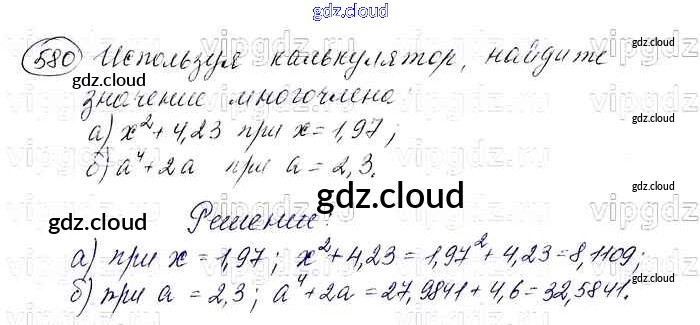 Ответ на задание 580 Учебник Алгебра за 7 (седьмой) класс Макарычев, Миндюк, Нешков, Суворова 2015