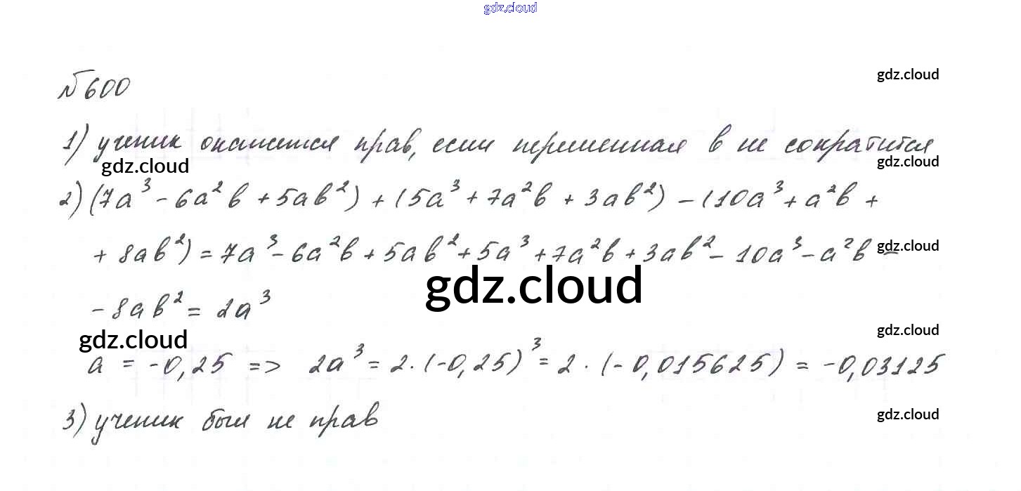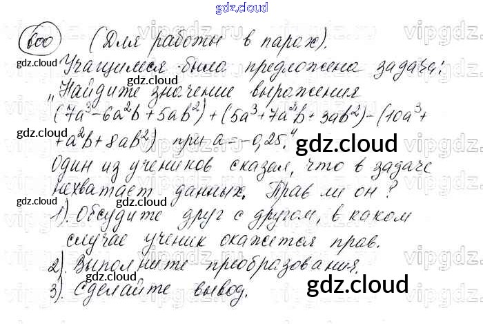Ответ на задание 600 Учебник Алгебра  за 7 (седьмой) класс Макарычев, Миндюк, Нешков, Суворова   2015