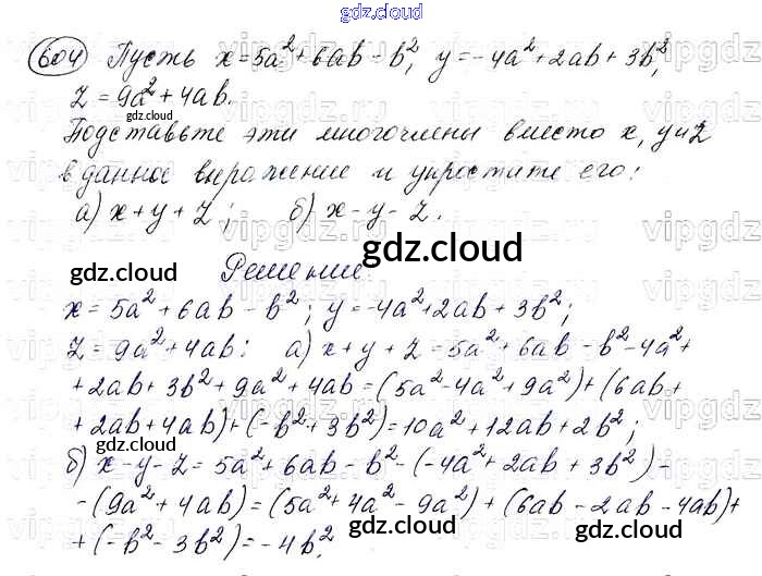Ответ на задание 604 Учебник Алгебра за 7 (седьмой) класс Макарычев, Миндюк, Нешков, Суворова 2015
