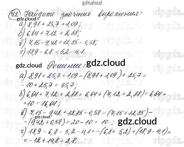 Ответ на задание 72 Учебник Алгебра за 7 (седьмой) класс Макарычев, Миндюк, Нешков, Суворова 2015