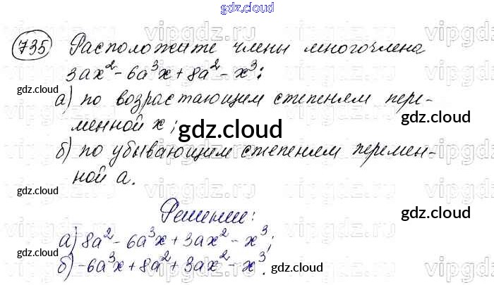 Ответ на задание 735 Учебник Алгебра  за 7 (седьмой) класс Макарычев, Миндюк, Нешков, Суворова   2015