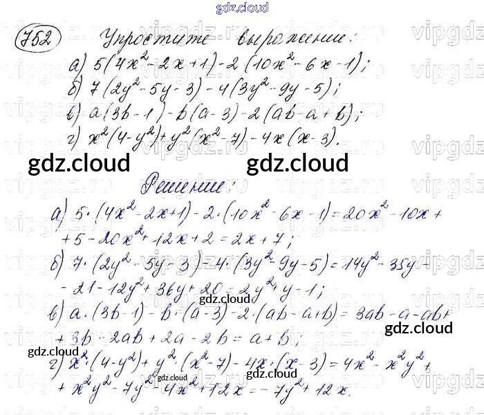 Ответ на задание 752 Учебник Алгебра  за 7 (седьмой) класс Макарычев, Миндюк, Нешков, Суворова   2015