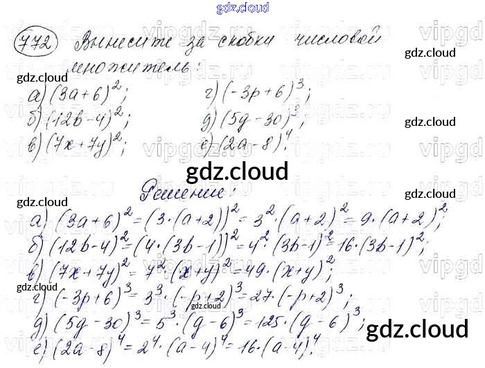 Ответ на задание 772 Учебник Алгебра за 7 (седьмой) класс Макарычев, Миндюк, Нешков, Суворова 2015