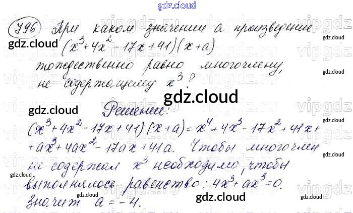 Ответ на задание 796 Учебник Алгебра за 7 (седьмой) класс Макарычев, Миндюк, Нешков, Суворова 2015