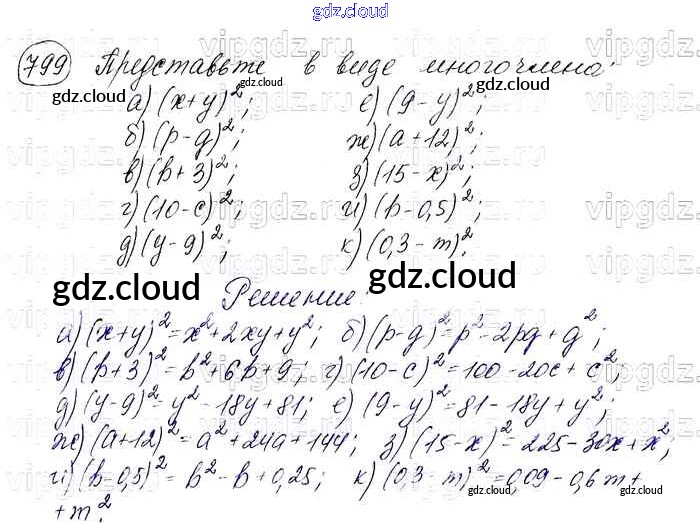 Ответ на задание 799 Учебник Алгебра за 7 (седьмой) класс Макарычев, Миндюк, Нешков, Суворова 2015