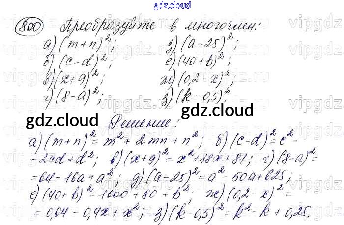 Ответ на задание 800 Учебник Алгебра  за 7 (седьмой) класс Макарычев, Миндюк, Нешков, Суворова   2015