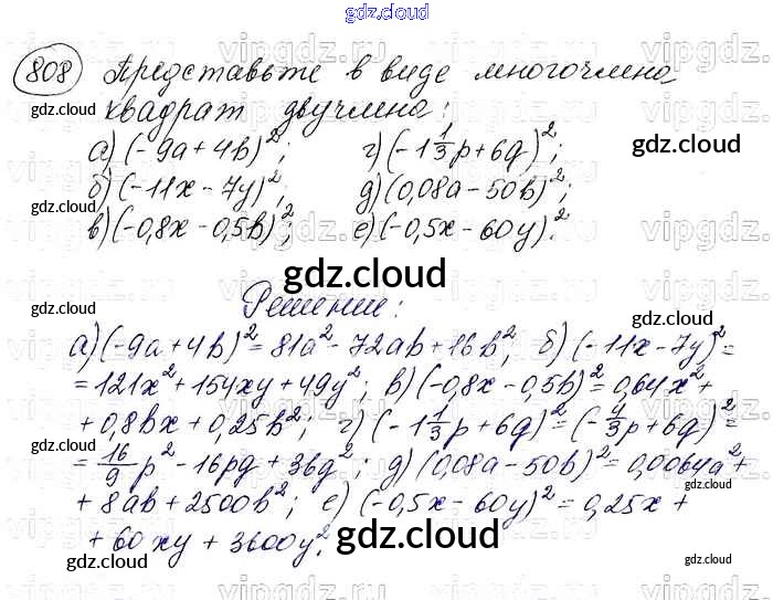 Ответ на задание 808 Учебник Алгебра за 7 (седьмой) класс Макарычев, Миндюк, Нешков, Суворова 2015