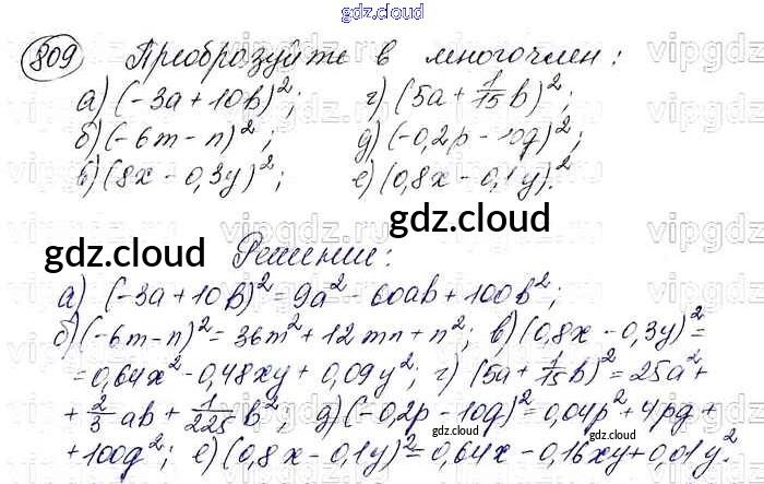 Ответ на задание 809 Учебник Алгебра за 7 (седьмой) класс Макарычев, Миндюк, Нешков, Суворова 2015
