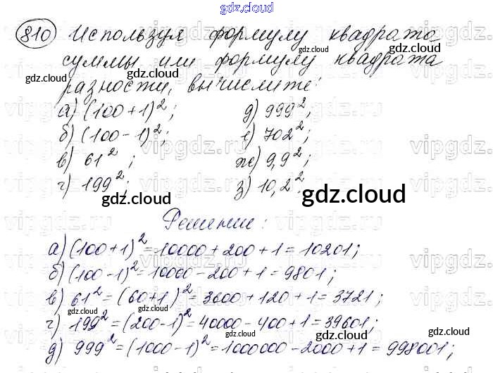 Ответ на задание 810 Учебник Алгебра  за 7 (седьмой) класс Макарычев, Миндюк, Нешков, Суворова   2015