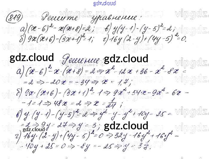 Ответ на задание 819 Учебник Алгебра за 7 (седьмой) класс Макарычев, Миндюк, Нешков, Суворова 2015