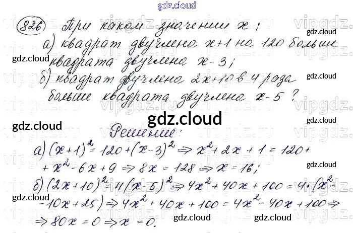 Ответ на задание 826 Учебник Алгебра  за 7 (седьмой) класс Макарычев, Миндюк, Нешков, Суворова   2015