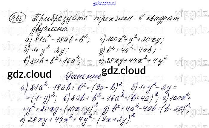 Ответ на задание 835 Учебник Алгебра за 7 (седьмой) класс Макарычев, Миндюк, Нешков, Суворова 2015