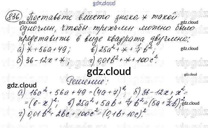 Ответ на задание 836 Учебник Алгебра за 7 (седьмой) класс Макарычев, Миндюк, Нешков, Суворова 2015